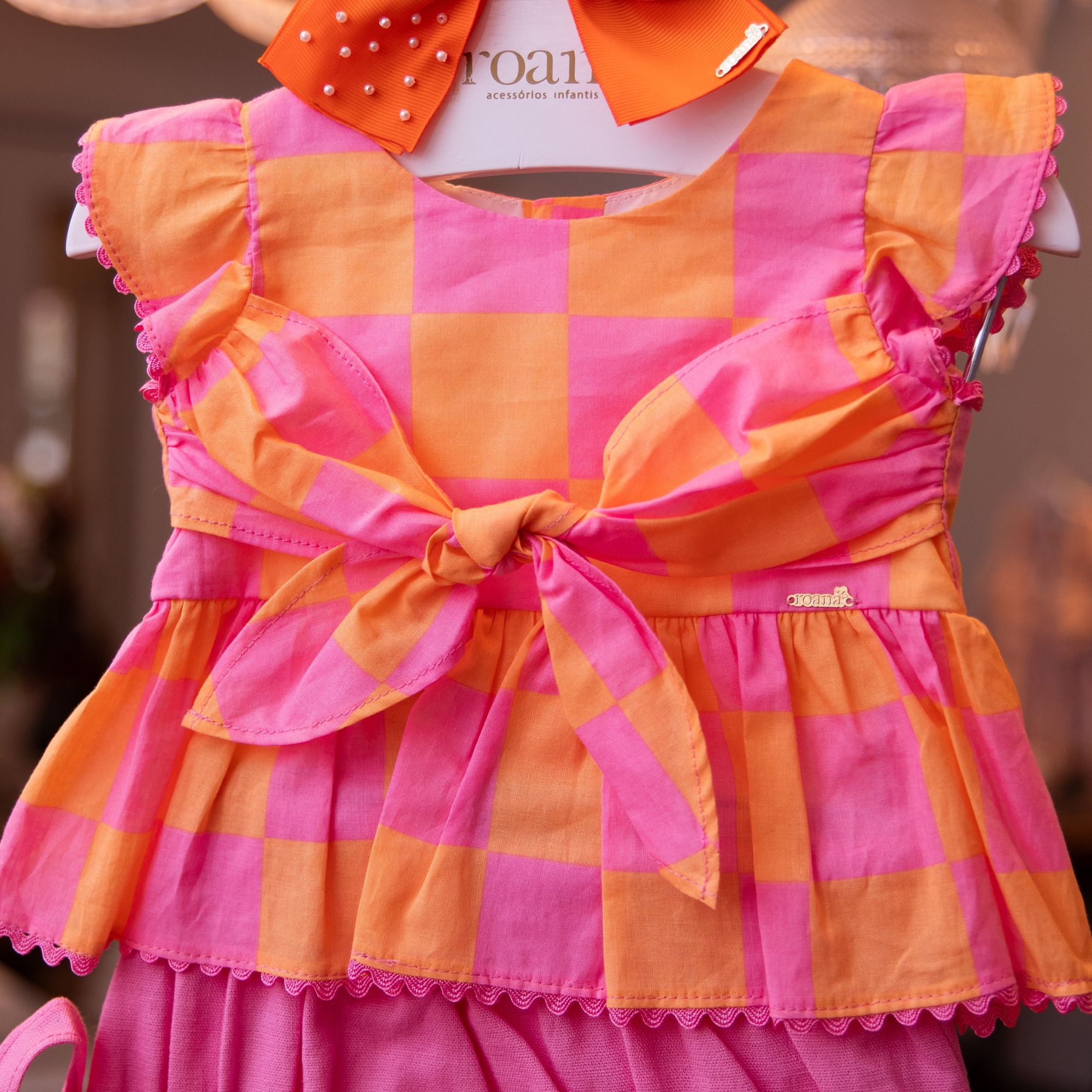 Conjunto Infantil Bata com Culote ou Short Encanto de Verão Rosa Roana
