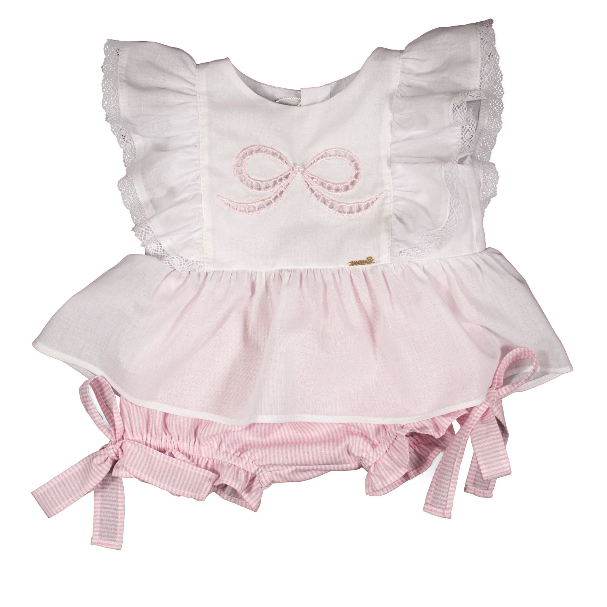 Conjunto Infantil Bata com Culote ou Short Laço Rechilieu Listrado Rosa Roana