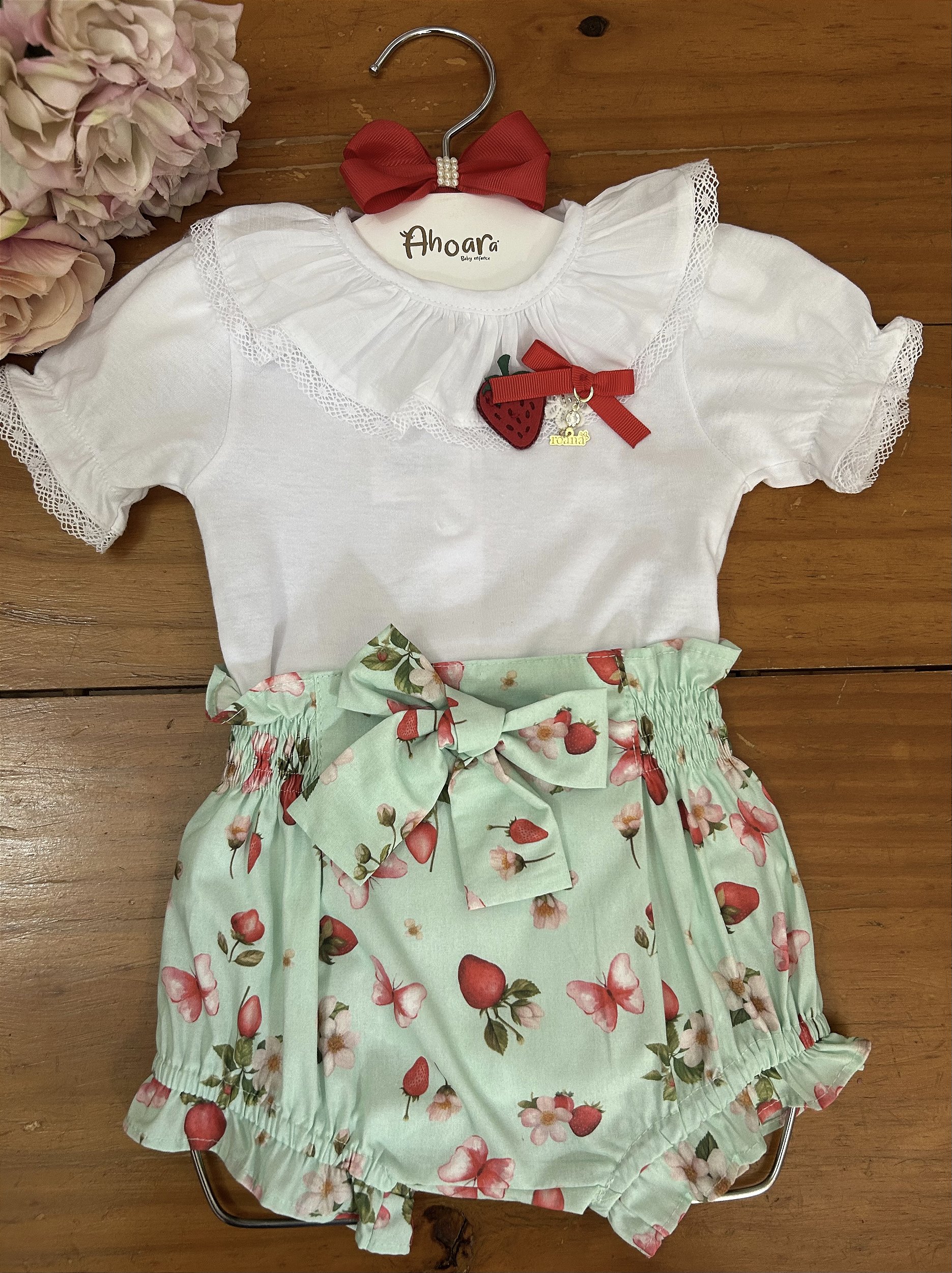 Conjunto Infantil Body com Culote Doce Moranguinho Estampado Verde Roana