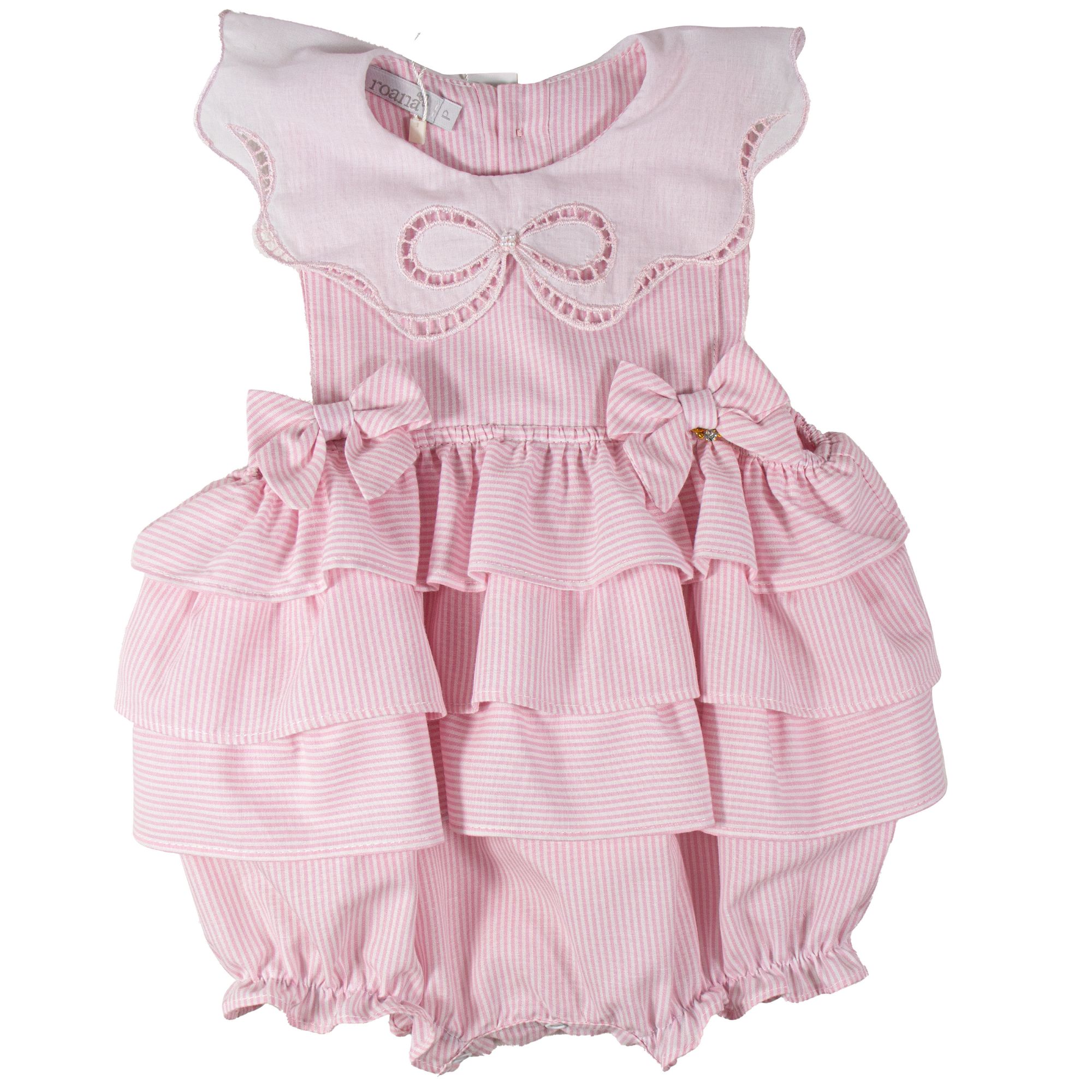 Pimpão Romper Infantil Gola Laço Rechilieu Listrado Rosa Roana