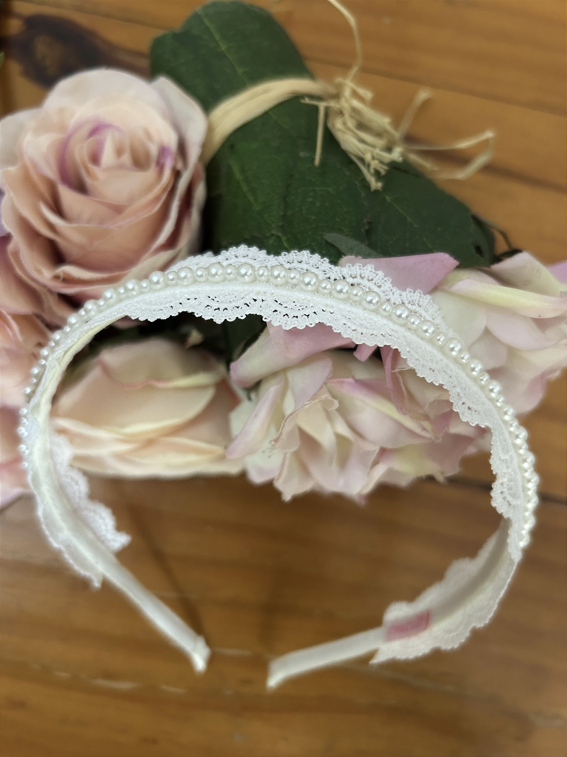 Tiara Infantil Menina Delicada com Renda Marfim Roana