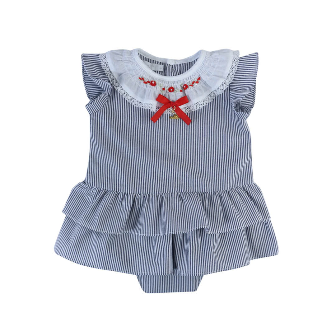 O Vestido Infantil Pétalas do Mar da Roana é a escolha perfeita para ocasiões especiais, unindo o clássico listrado azul marinho a detalhes bordados que encantam. Esta peça é ideal para trazer sofisticação e conforto ao visual das pequenas, com um toque de frescor e estilo.